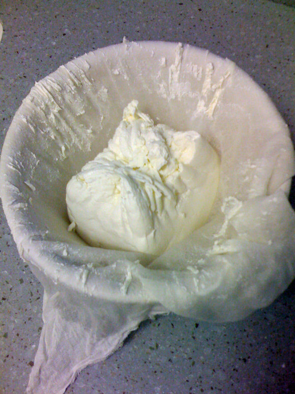 6. Remove from muslin, mix in a little salt (optional–but makes a pretty big difference), and form into “logs” or whatever other shape you want.