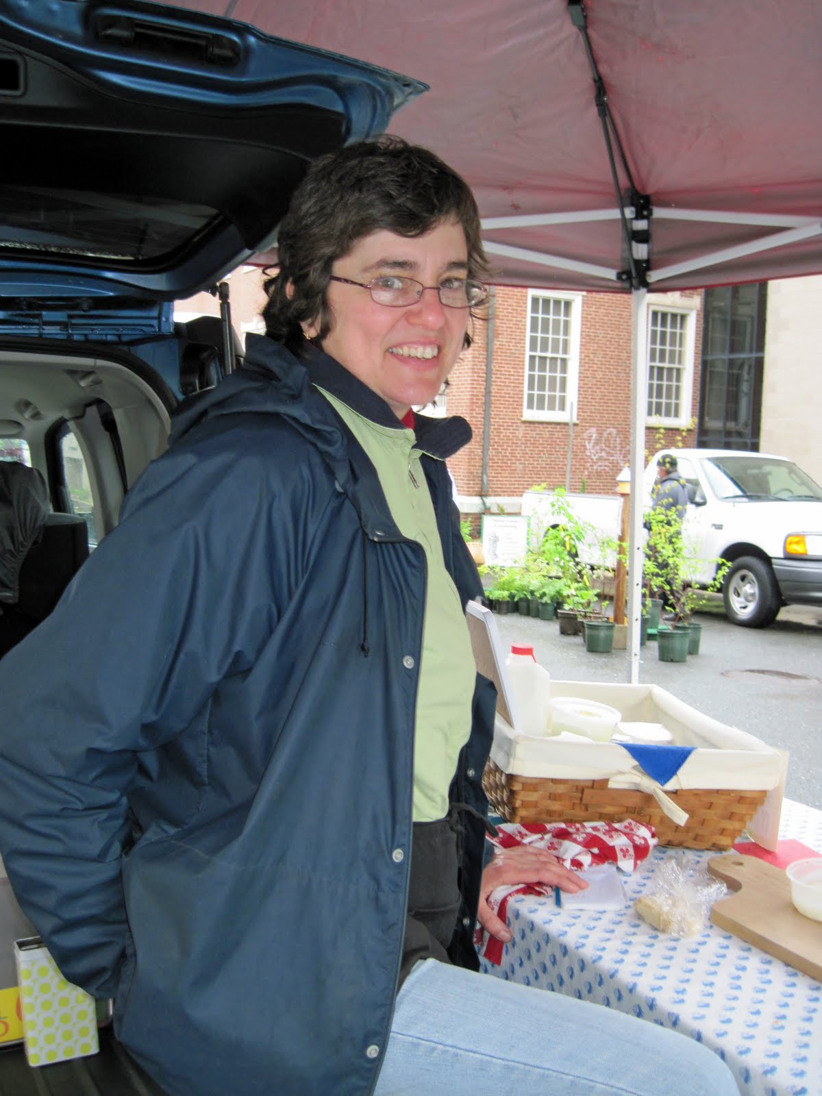 Every Saturday, in the season, she carts their cheeses to the Farmer’s Market in Northampton,MA. If you’re in the area, you can purchase: bottled pasteurized milk, fresh cheeses, mold-ripened cheeses, raw milk aged cheeses, raw milk Feta, Greek style yogurt, and sometimes goat meat. Other places you can buy their cheeses are listed on their website- www.hillmanfarm.com