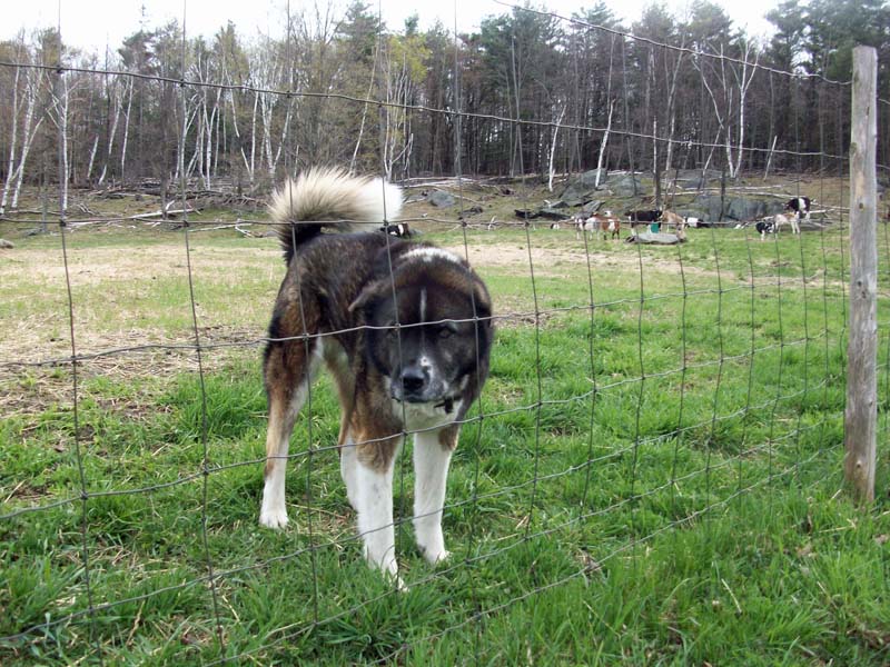 Murphy is a livestock dog and he stays with the goats to protect them whenever they’re outside (Their other dog, Abby is a mouser.)