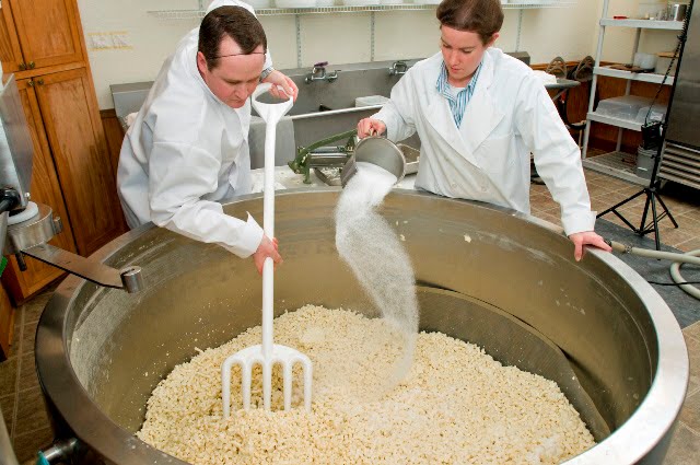 In 2008, we moved into a larger building and got a 200 gallon vat pasteurizer, a walk-in aging cooler and a 4-piston cheese press.