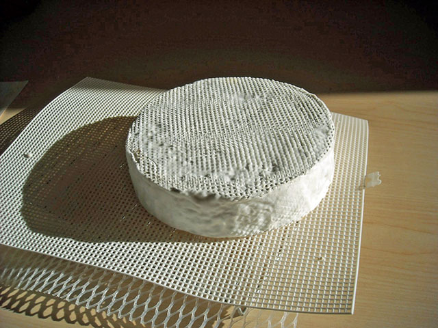 Note: If you do not have an area that is 55 degrees, do not fret. The ripening container can be kept in a refrigerator also, the mold will just take longer to develop on the outside and work at ripening the cheese on the inside. A method that worked well for me was to move the ripening container in and out of the refrigerator each day, half the day in the refrigerator and half a day in a cool (65 degree Fahrenheit) room.
