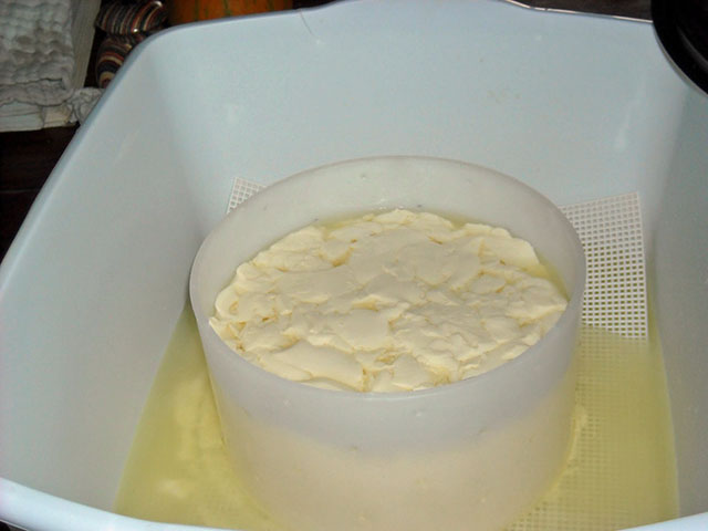 Now, let the cheeses stand for 2 hours (that is from the point the last of the curds were added).
