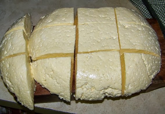 When you are done, you will have a nice big flat smooth slab of cheese.