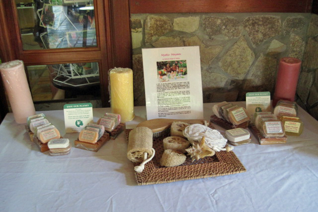 | A display table in the lodge of various soaps for sale. 100% of the proceeds support the Youth Chess Foundation. |
