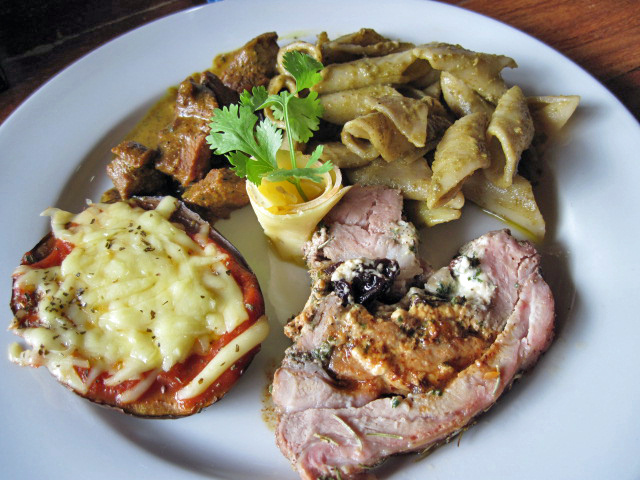 In the upper left, curried lamb. In the lower right- lamb stuffed with ricotta