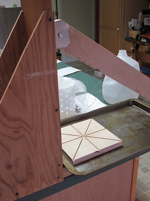 scrap lumber and my cheese mold from an large empty plastic jar!