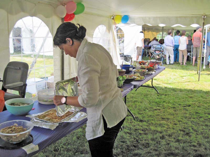 Ricki and Jamie had borrowed a refrigeration truck from Paul and Amy at Sidehill Farm and Norm, their next-door neighbor let them keep it in their driveway. The guests brought their dishes there when they arrived.