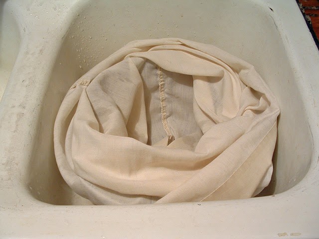 Line a colander in the sink with a clean old pillowcase (I like the “thinner” fabric pillowcases because they drain better).