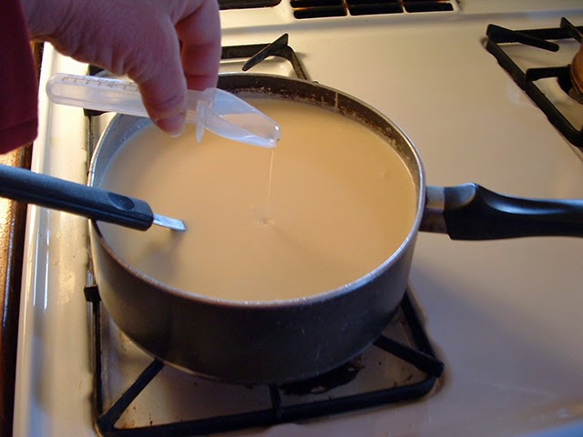 Add one teaspoon of the diluted rennet and mix thoroughly.