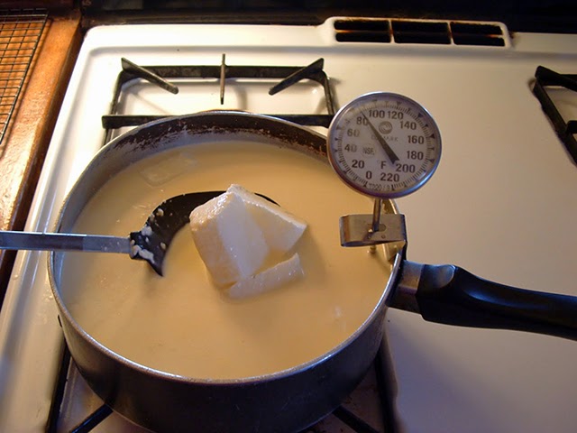 On her website, she shares all kinds of information about all kinds of subjects, including cheese making. So far, she has posted excellent tutorials about making cheddar cheese, mozzarella and cream cheese (shown here).