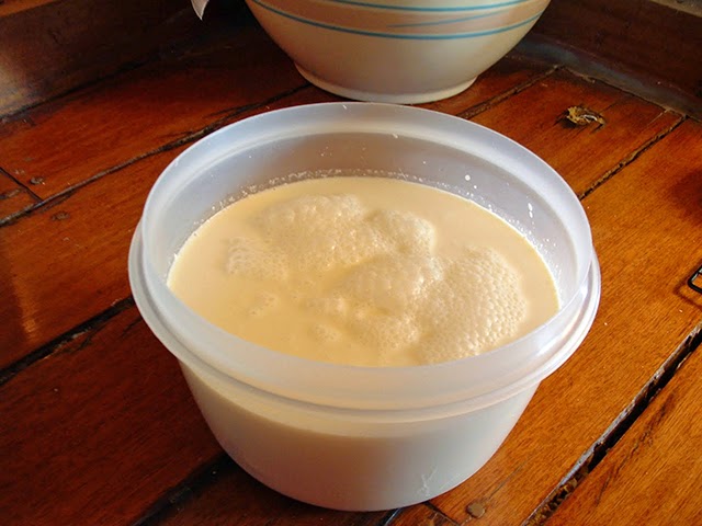 Add 4 ounces of mesophilic starter (I freeze mine in cubes) and stir until the cubes melt.