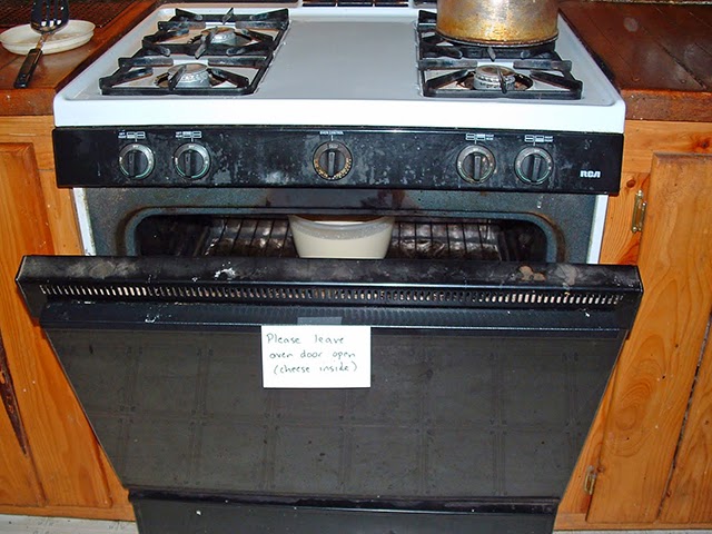 I tucked the bowl of cream into our gas oven, which has a pilot light and therefore stays warm. But if the door was closed, it was too warm, so I taped a little note to the oven door asking that it stay open. This kept the cream at a consistent 72F. If your day is warm, you might be able to just keep the cream on the kitchen counter for that time. If it’s a hot day, perhaps you can find a cool spot (basement? washroom?) to keep it.