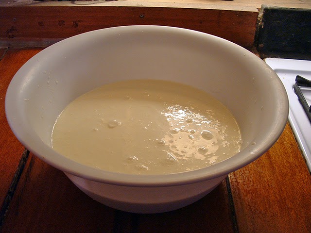 After twelve hours, I poured the contents into the largest bowl I have. Believe me, use your largest bowl. The next step is to take a separate pot of water and heat it to 170F. Heat at least two quarts of water, probably three to be on the safe side.