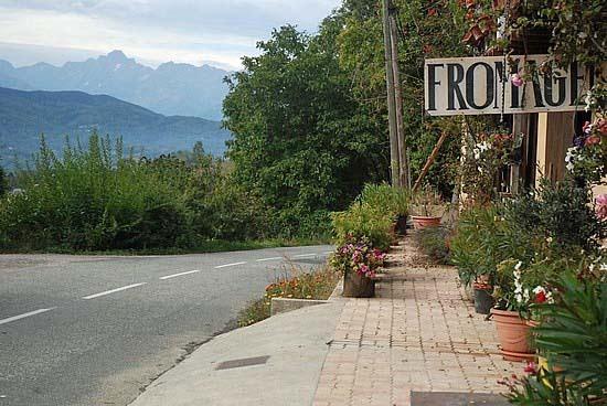 Very easy natural type of cheese that can be made with any milk. Down the road a bit there’s a local farm advertising the sale of their cheese made from chevre. There have even been sheep’s milk cheeses for sale in some of the stores. Tomme des Pyrenees is a very mild tasting cheese, firm, but with holes in it.