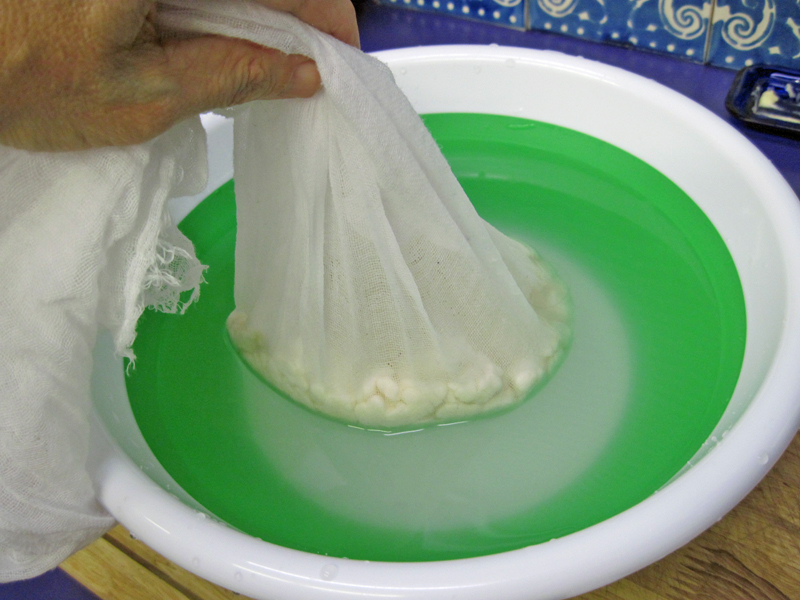 I quickly dipped the curds into cold water (this helps them remain sweet rather than continuing to sour).
