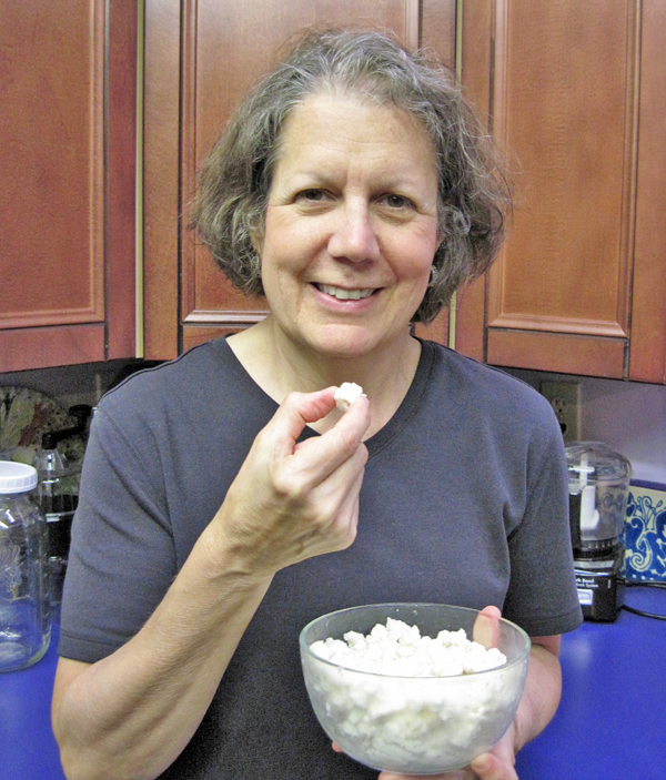 And that was it. I added salt. If company was coming, I would probably add a little cream to the curds, but since I’m watching my calories, I didn’t. I like to add this kind of cottage cheese to my scrambled eggs and to salads – even chicken salad.