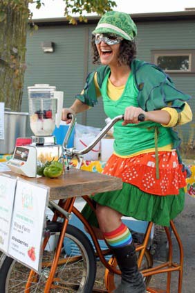 Haniya’s mother, Hether Frayer works to educate children about healthy food as the Fresh Food Fairy. You can see how she makes this fun for the kids at her website, Fresh Food Fairy.org. She goes to schools with her unique bicycle blender: