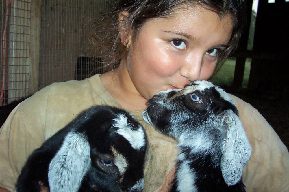 Here is a picture of me with our little preemie doe. She loves to snuggle in bed with me (don’t tell mom!).