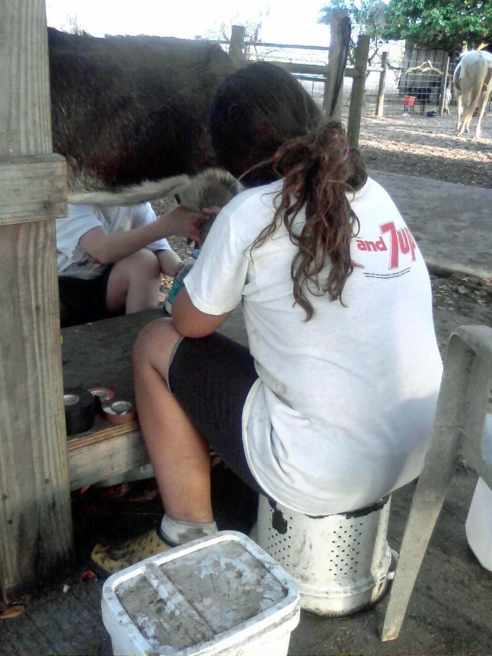 We have to shave/clip our goats with electric trimmers and trim their feet/hooves, their coats must be sparkling white and they must be in top condition. Every day I feed twice a day and bottle-feed the baby goats and milk their moms.