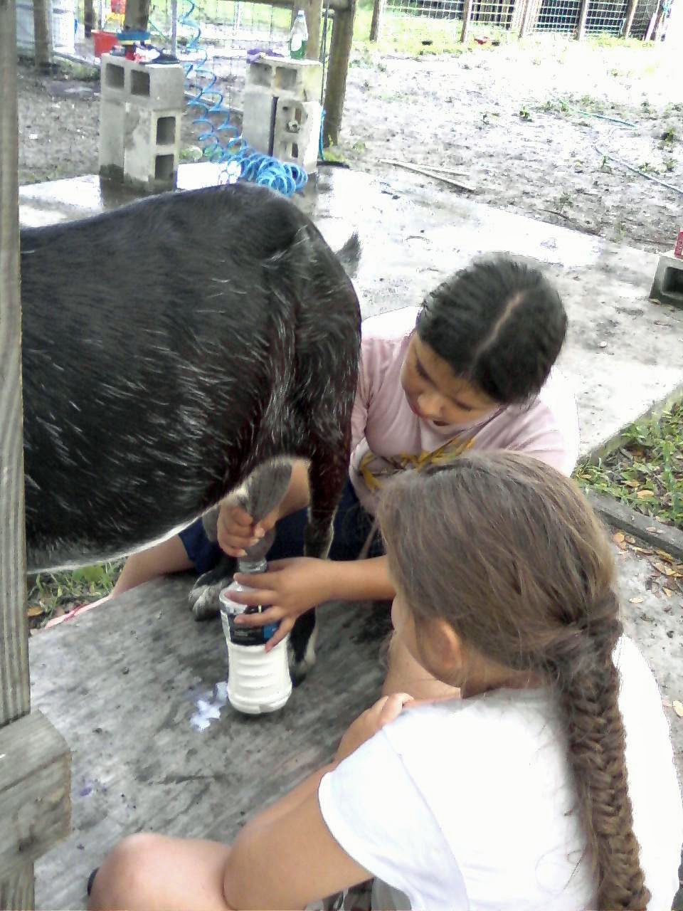 Here are some more pictures. There are a few of the milking demonstration we gave at Manatee Park to the inner-city kids that were at summer camp there. They had so much fun milking our goats and it was fun teaching them. Some were “natural” milkers, they picked it up really quickly!