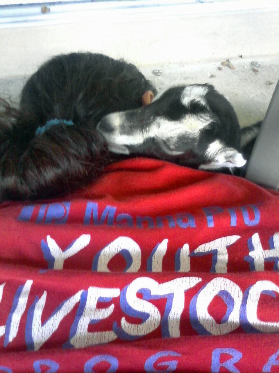 Here is a picture of me with our little preemie doe. She loves to snuggle in bed with me (don’t tell mom!).