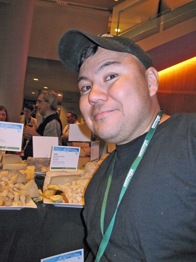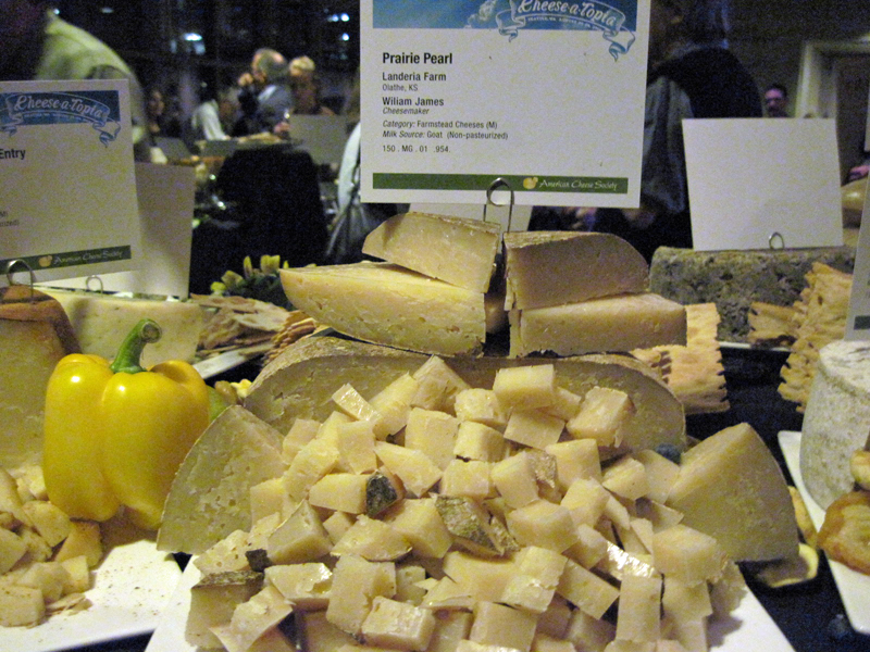 In August, at the American Cheese Society Festival of Cheeses in Seattle, I happened to sit down next to Kathy’s daughter on the stairway. She mentioned that her mother had entered two cheeses in the competition. So, we went to the Farmstead Cheeses table where I met Kathy and William James, the two master cheesemakers from Landeria Farm in Kansas. I snapped a few pictures of their cheeses: