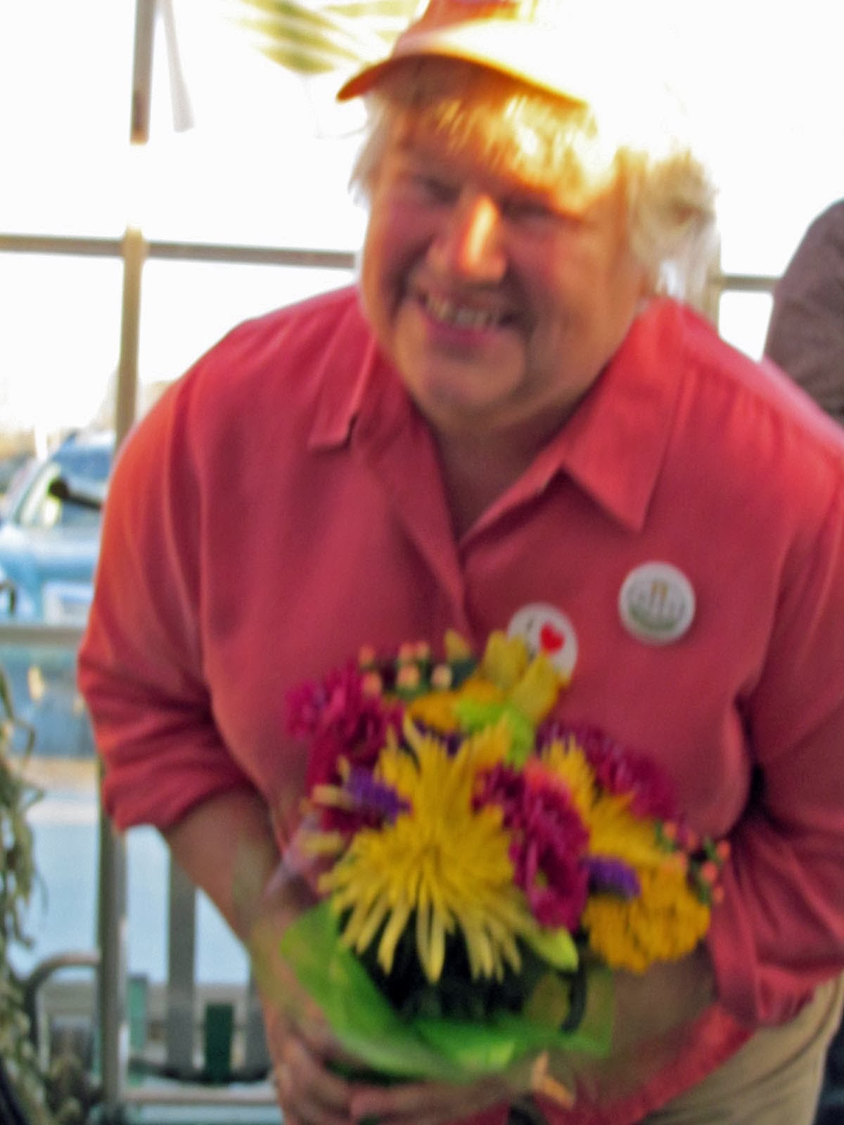 Barbara accepted a well deserved bouquet of flowers.