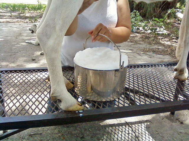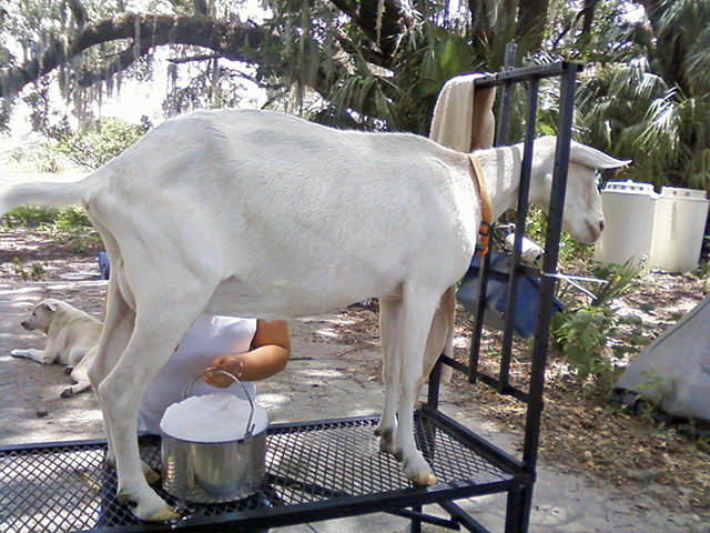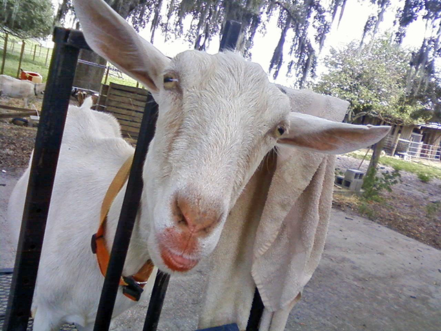 Maureen is one of the Directors of the Florida Dairy Goat Association. As such, she supports the members in owning goats, making dairy food products and selling them to the public at Farmer’s Markets: She explained her job to us: “I promote the care and responsibilities of owning goats to youth members and future members; encourage new owners to attend the many seminars and shows put on by the FDGA; and act as liaison to the officers on the Board from the general public.”