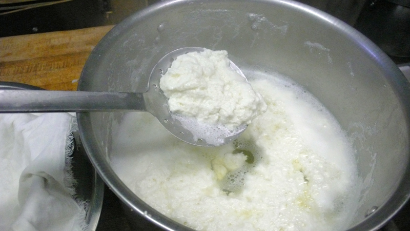 You will see the whey turning into ricotta cheese.