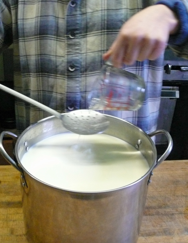 1/4 teaspoon liquid rennet dissolved in 1/4 cup cool water