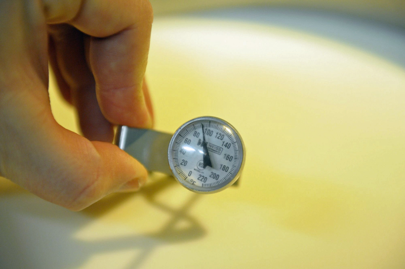 Heat the milk to 90°F.