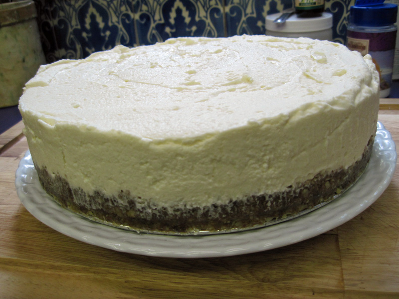 | This was another huge cheesecake, but raw cocoa was added to the crust and the filling. |