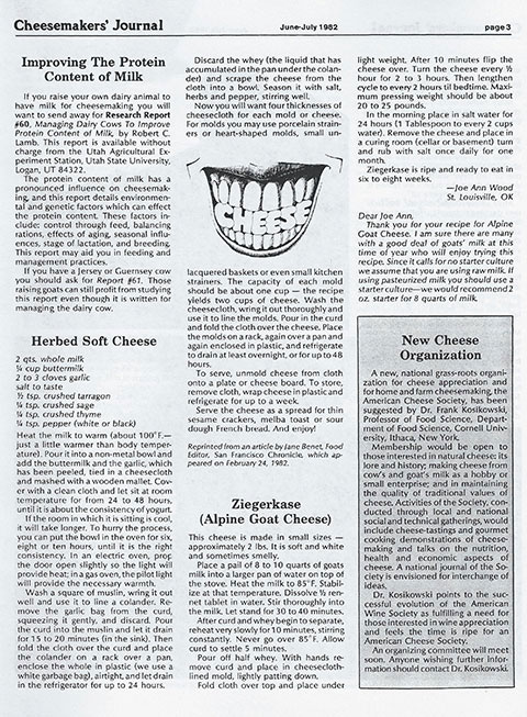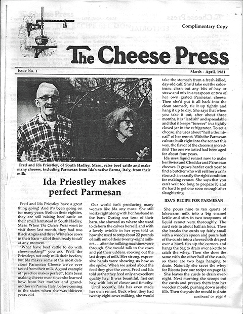 In 1982, they published “Making Cheeses at Home” by Susan Ogilvy, under the aegis of the Cheese Press.