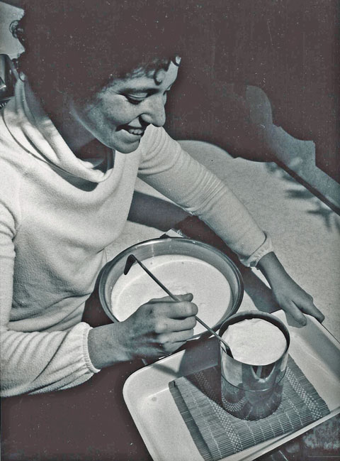 Bob and their friend, Margo Potter who Ricki worked with laying out the ‘Ashfield News’ worked together on “The Little Home Cheesemaking Workbook” (19 p., illustrated by their neighbor Linda Taylor). Covered in the workbook: equipment needed, how to make and use cheese starter culture, and step-by-step recipes for lactic cheese, small curd cottage cheese, Coulommiers and Caerphilly, Gouda, ricotta and Mysost.