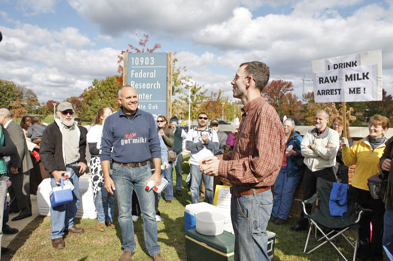 The best description of this demonstration can be found at David Gumpert’s blog, “The Complete Patient.” Apparently, there was an important gain made as a result of it – The FDA announced that it will no longer enforce the Interstate Commerce Act against individuals carrying raw milk across state lines. That is a real breakthrough and although it doesn’t help the buying clubs, it’s a major step in the right direction. (Applause here for everyone involved.)