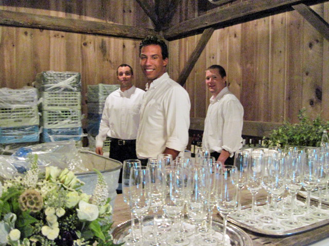 Speaking of energy, these handsome young men who work together as teachers at their day jobs, managed to set up and run the bar, serve hors d’oeuvres, fill glasses, light candles, clear the tables, and clean everything up for nine straight hours (with smiles on their faces the whole time). From left, Matt, Rob and Ryan – we salute you!