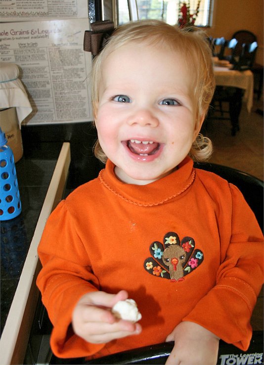 | Isabella, now a toddler, loves eating fresh salted Cheddar curds |