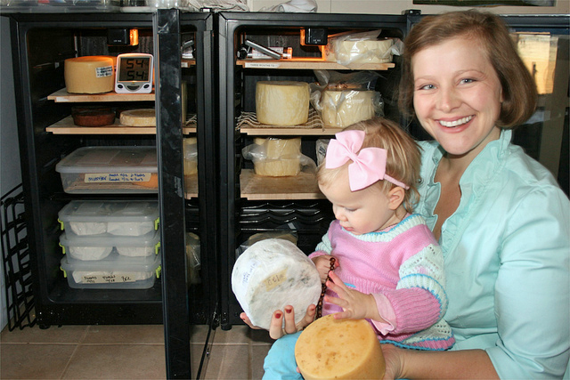 (Rashel currently has 46 videos on YouTube about all aspects of farming, cooking and cheese making. Here are a few of her videos: Making Ice Cream from Raw Cream, PART 1: Milking Parlor Tour: Family Milk Cow (first of a 4 part series), Making Cultured Butter from Whole Milk and How to Make Camembert/Brie Cheese at Home (shown below).