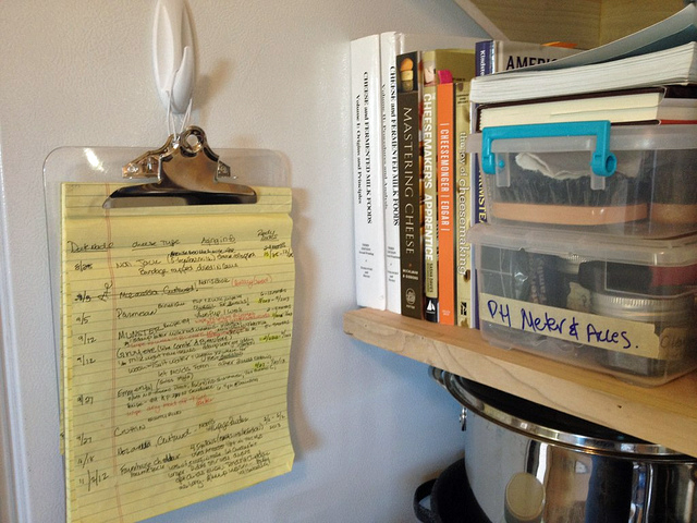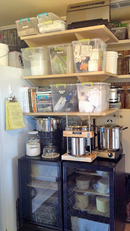 I make cheese one to two times a week, depending on how much milk we have. Since we keep a family cow and our milk supply is seasonal, I try to make many hard cheese that will last us when our cow is dry (not milking). My goal is to make enough cheese for us to eat all year long… I haven’t met this goal yet, but probably about half of the cheese we eat is our cheese! Maybe next year, I’ll meet my goal of making all my own cheese… we eat a LOT of cheese around here.)