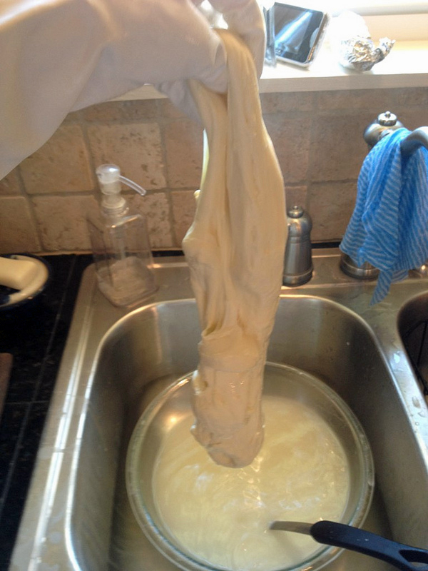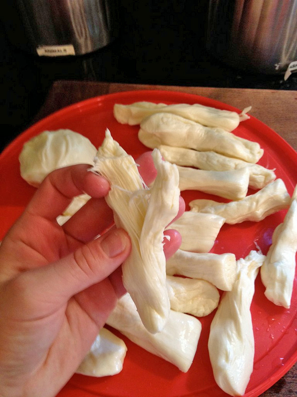 | Frozen cultured Mozzarella curds ready to be thawed out and stretched |