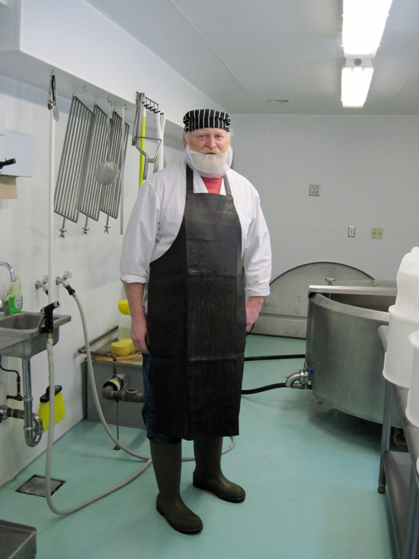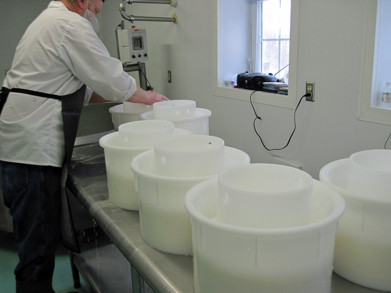 In New England, agriculture has always been considered residential. In fact, the Robinson Farm lies in a residential district (as do most farms). Unfortunately, the Board of State Examiners of Plumbers and Gas Fitters decided that the farm would be commercial if the Robinsons were making cheese on it. This meant that the pipes (which are usually PVC in creameries) would have to be made of cast iron. (Iron is the worst choice for dairy purposes because the acidity in the milk causes pitting and rusting in the pipes.)