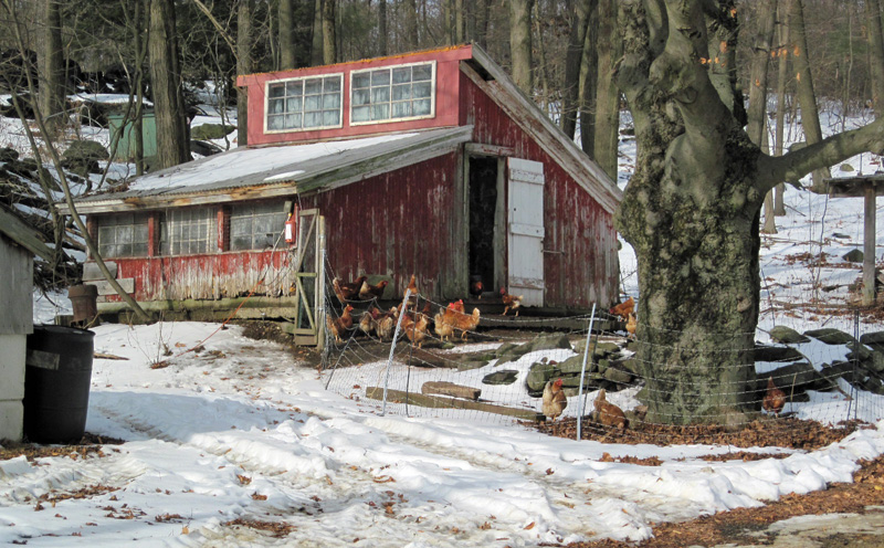 | The chickens have a nice view of the rolling hills beyond. |
