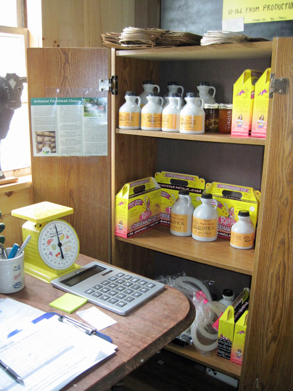 The Robinsons sell their own organic raw cow’s milk (at the farm only), grass-fed beef, organic eggs, seasonal vegetables and, as of four months ago, organic farmstead cheese. All of their cheese is washed curd with natural rinds and it is made with raw milk. (Of course, it is all aged more than 60days, as required by law.) In their farm stand, they also sell maple syrup, Sidehill yogurt, Westfield Farm goat cheese and, of course, our 30 Minute Mozzarella Kits (which add value to any retail establishment!).