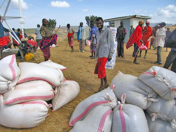 Each bag contains enough beans and corn for one month.
