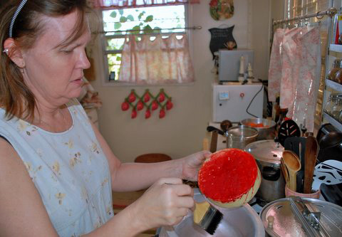 Sandra working with hot wax in a hot climate.