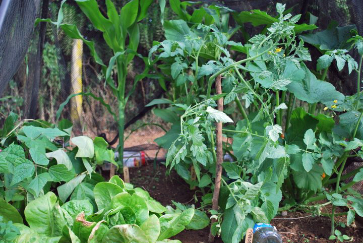 We have a small garden with a few raised beds so we can grow some fresh vegetables like lettuce, tomatoes, green beans. This is the first time we’ve done the raised beds, sort of a modified square foot garden and it seems to be working really well.