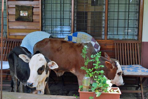 One of the calves kept licking that table which is made from an elephant’s leg (another story!).