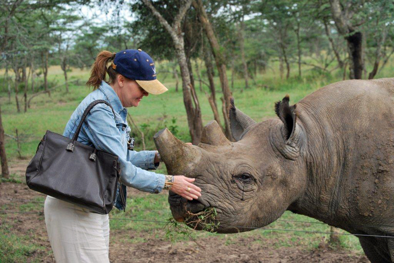 Sandra wrote: I had to send you this as it is one of the best parts of living here. This was taken on vacation with friends at a safari camp about 5 hours from our home. The rhino is blind, but he comes to the fence when called by the Kenya Wildlife Service rangers who work at the conservancy. It is a thrilling experience to pet and feed a wild rhinoceros! Other wild animals we’ve been privileged to “pet” are baby cheetahs, baby elephants, baby lions and TALL giraffes.