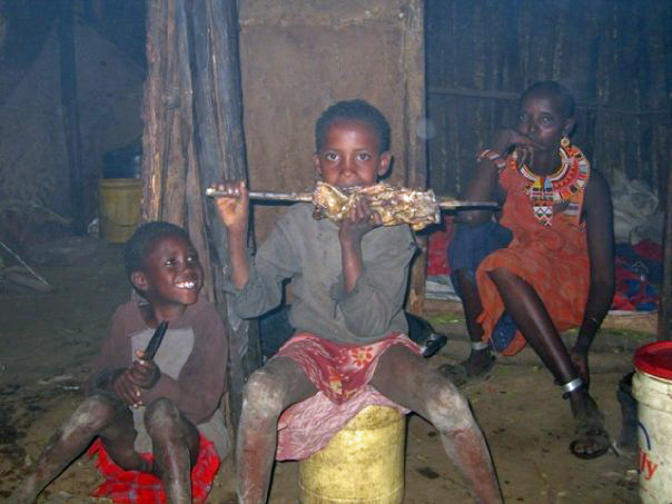 Neighbor children in Samburu outside their home