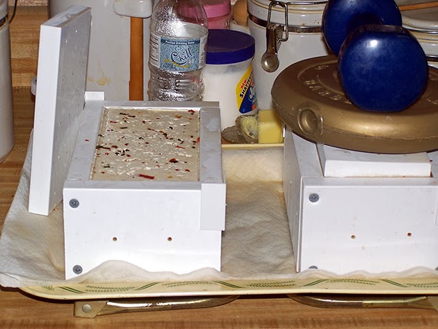 Colby in the drying stage Queso Blanco, plated and Gouda (in press) |